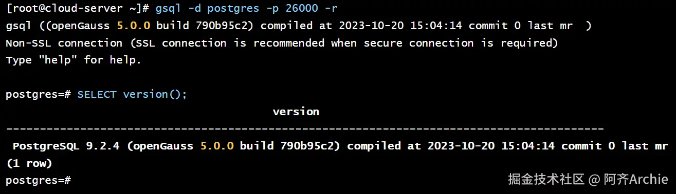 # 1. 安装 openGauss # 2. 初始化并启动数据库# (此处省略初始化和启动步骤,参考官方文档)# 3. 连接并验证