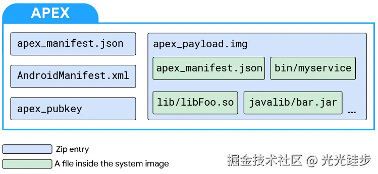 具体APEX的说明,请去官网了解: APEX 文件格式 | Android Open Source Project