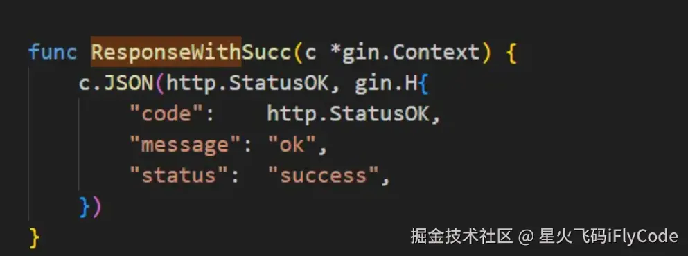 func ResponseWithSuccess(c *gin.Context) { c.JSON(http.StatusOK, gin.H{ "code": http.StatusOK, "message": "ok", "status": "success", })}