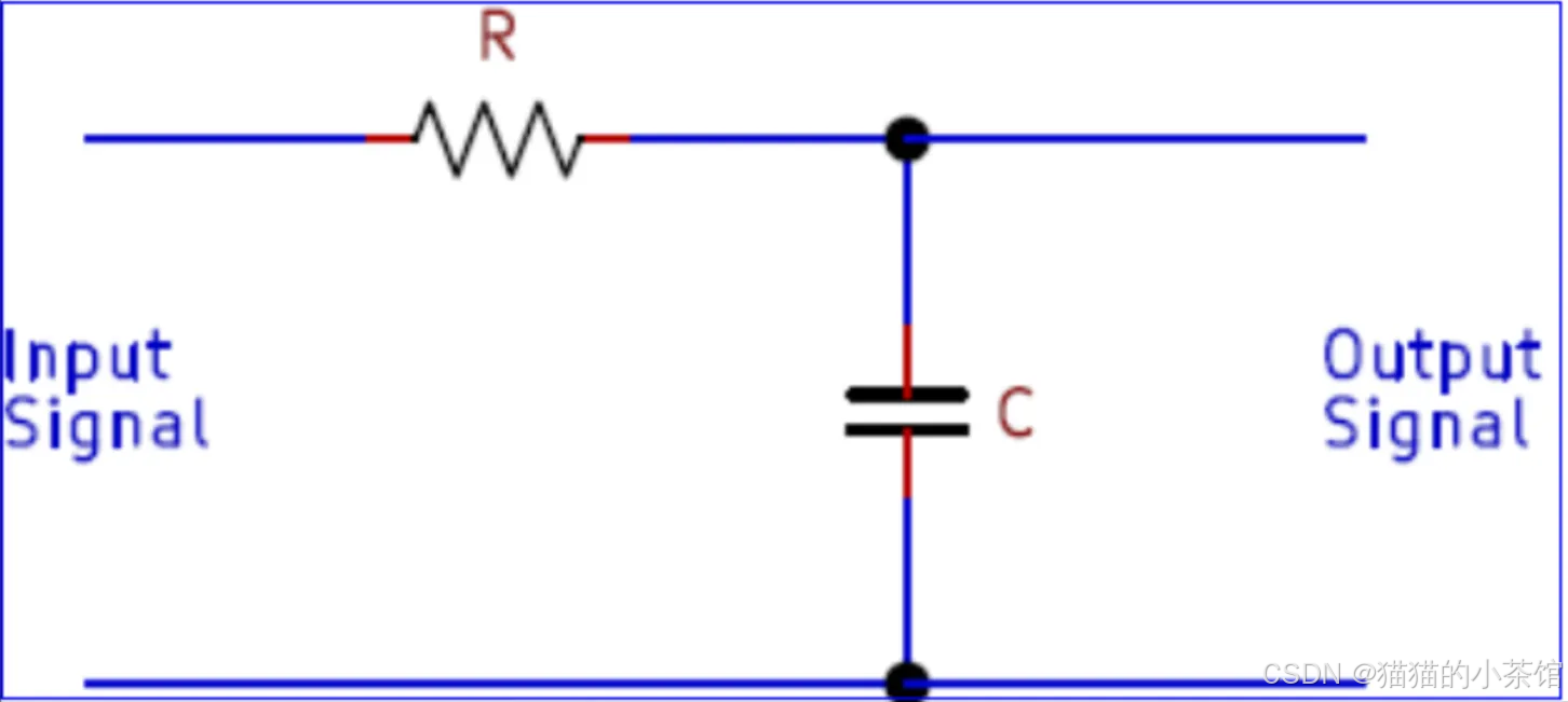 电容对高频阻力小 → 高频信号被电容"短路到地"→ 高频无法到达输出端(被滤除)(想象电容像一条"泄洪道",把高频信号引到地里去了)低频信号: