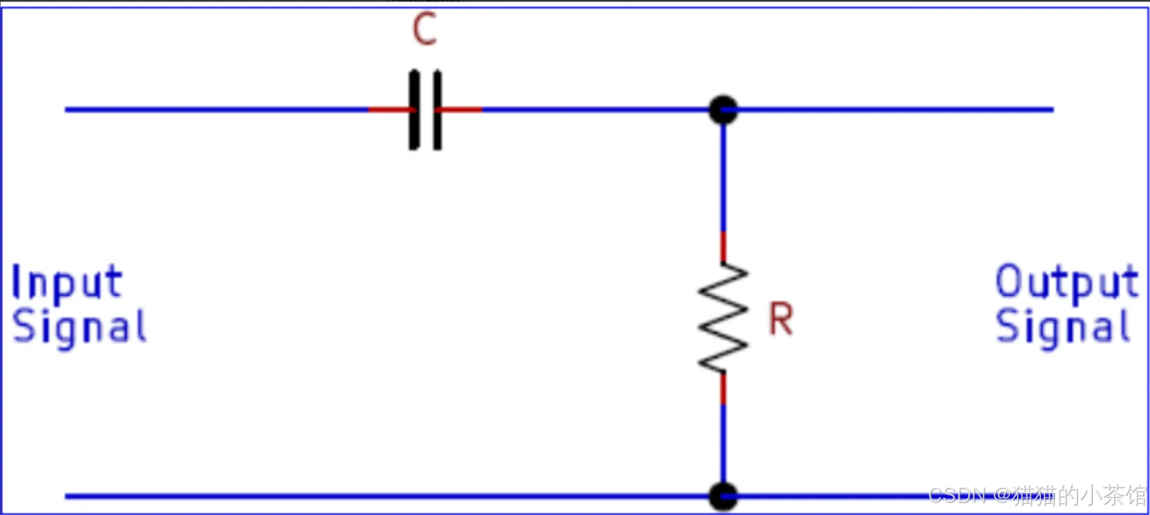 电容对低频阻力大 → 低频信号无法通过电容 → 低频被阻挡(想象电容像一堵"高墙",低频信号翻不过去。)高频信号 :