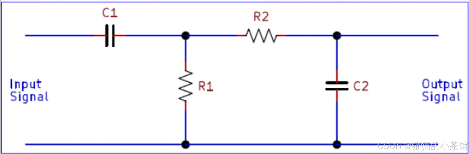 RC低通滤波器:它允许输入信号频率低于下限截止频率水平。通过改变电阻器和电容器的值,我们可以改变截止频率水平