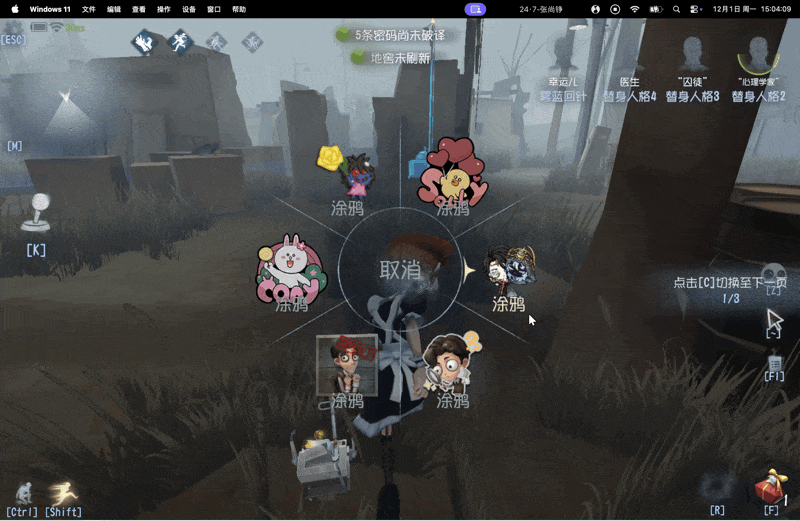 众所周知 macOS 运行第五人格要么用 crossover 等 wine 工具要么用 pd 等虚拟机软件 但是使用前者可能导致游戏时不时卡死(排位的时候卡死那就完了) 但是 pd 虚拟机会导致使用涂鸦或快捷发言的时候视角偏移....