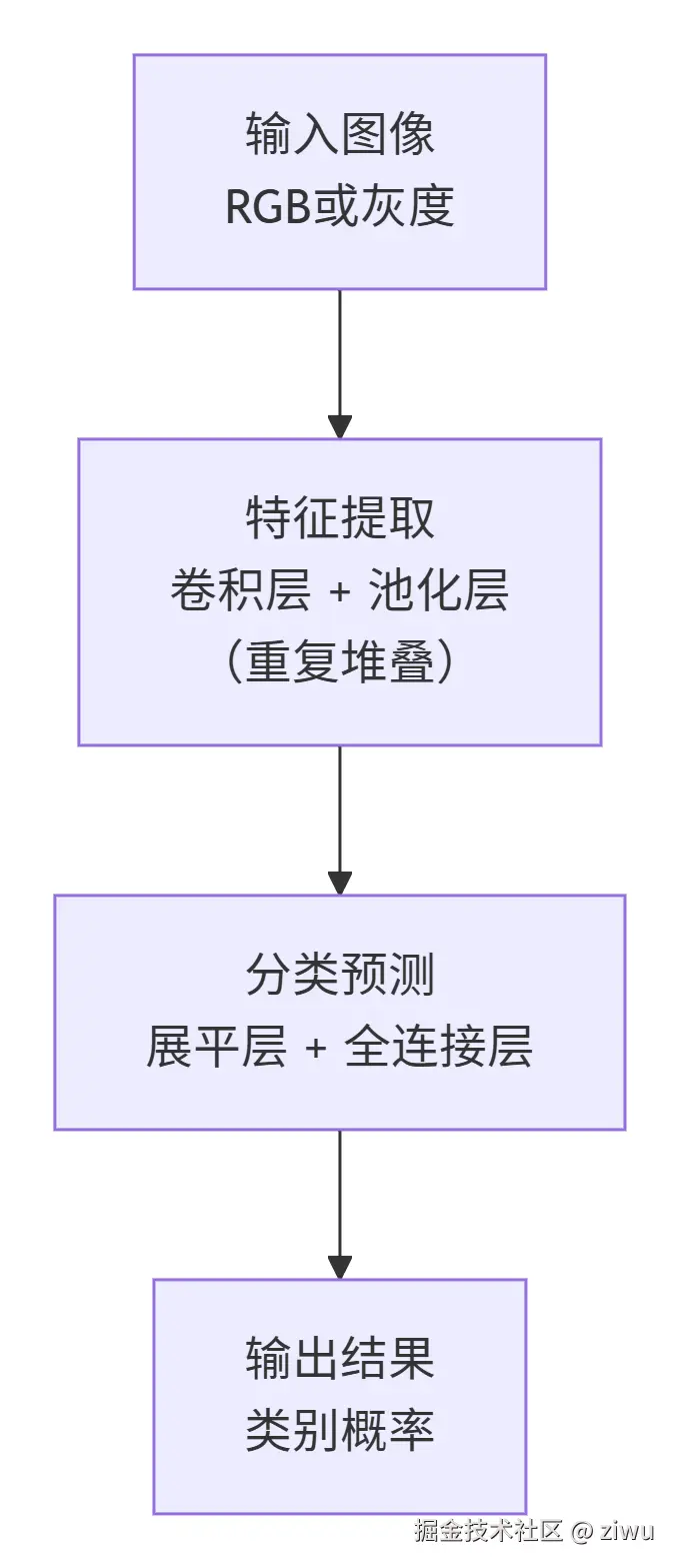 这个流程简洁地概括了CNN将原始像素逐层转化为类别预测的关键步骤。