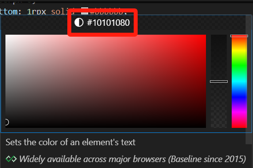 将鼠标悬停在颜色值上,会弹出颜色选择器