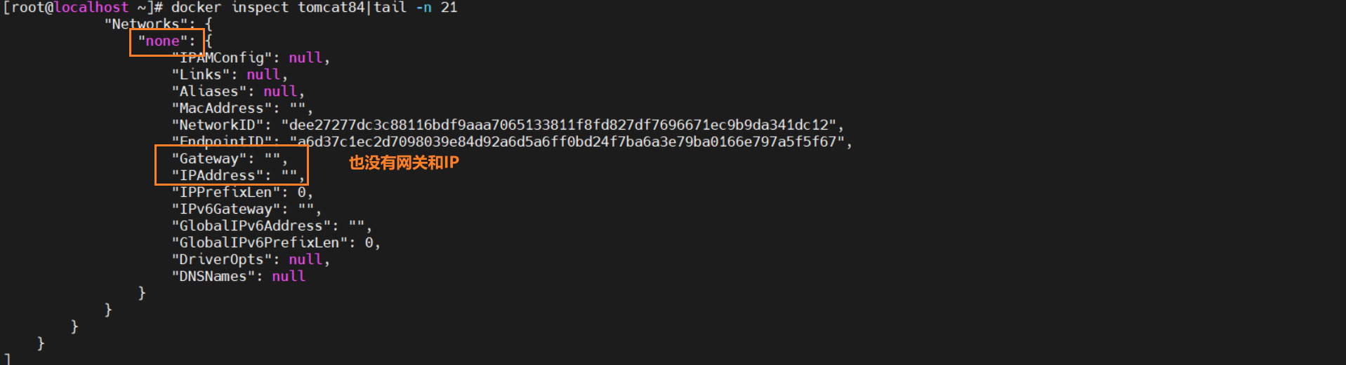 docker inspect tomcat84|tail -n 20