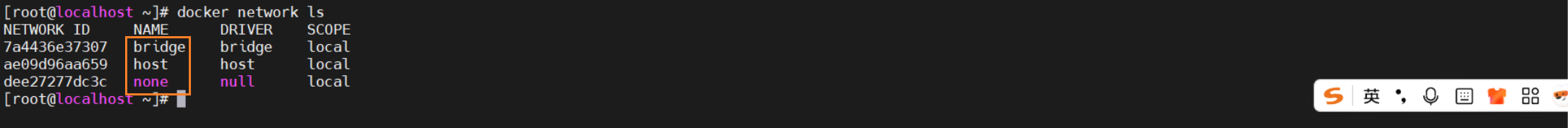docker network ls # 查看docker的网络模式