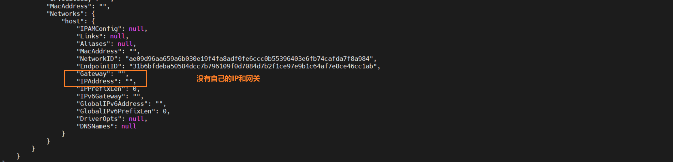 host模式下,容器没有自己的网关和IP