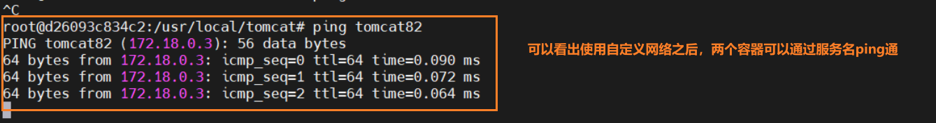 自定义网络本身就维护好了主机名和ip的对应关系(ip和服务名都是可以ping通的)