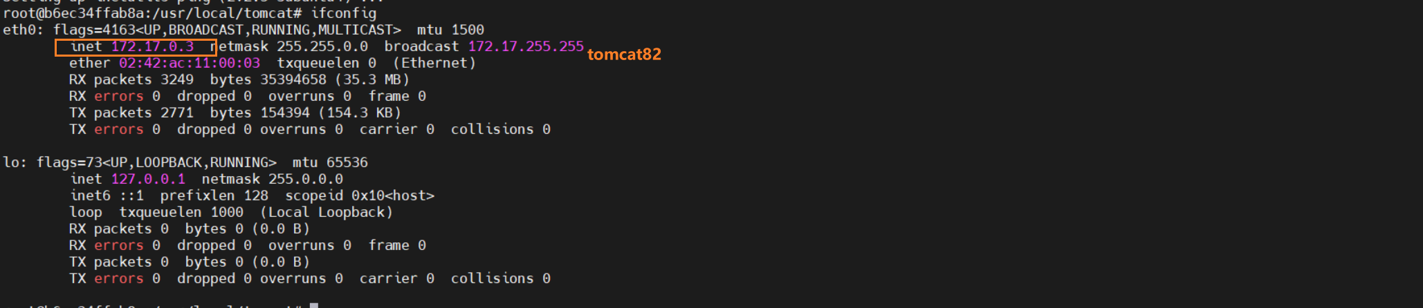 tomcat82的IP172.17.0.3