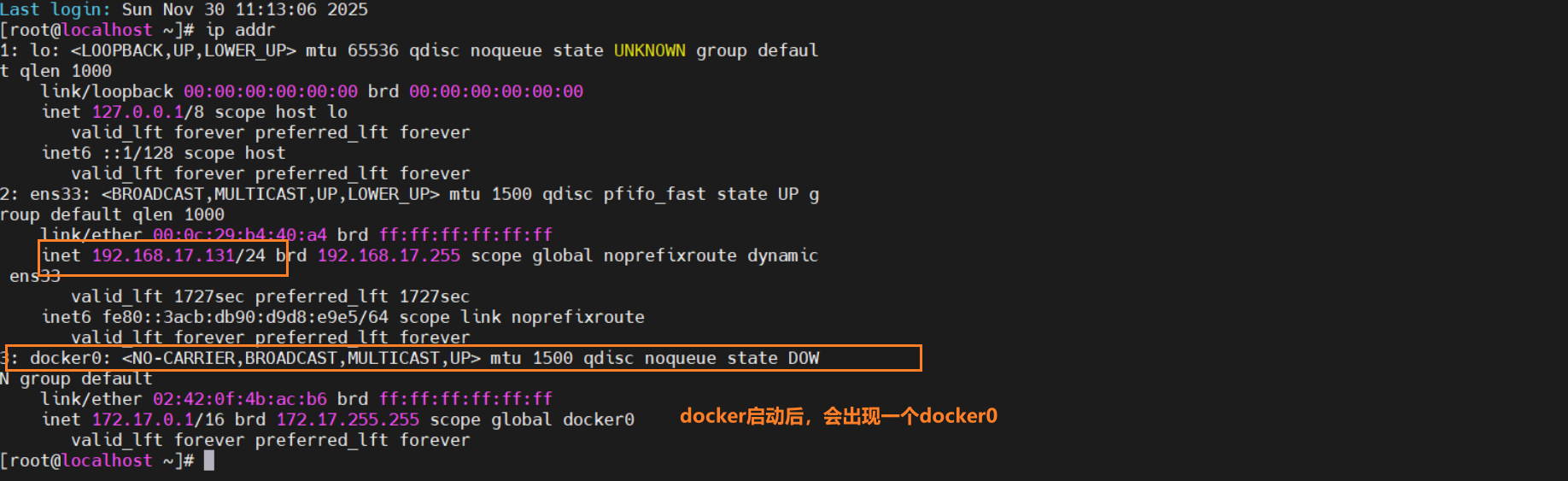 docker启动后会产生一个名为docker0的虚拟网桥