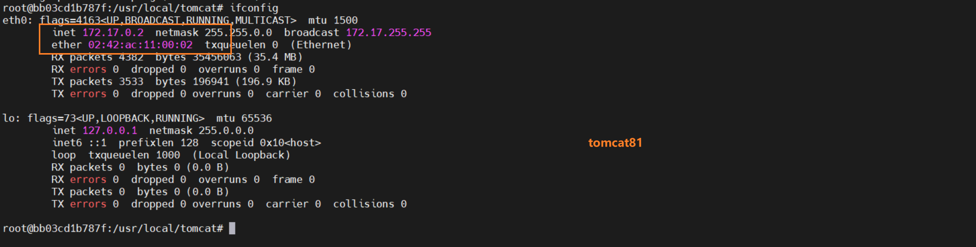 tomcat81的IP172.17.0.2