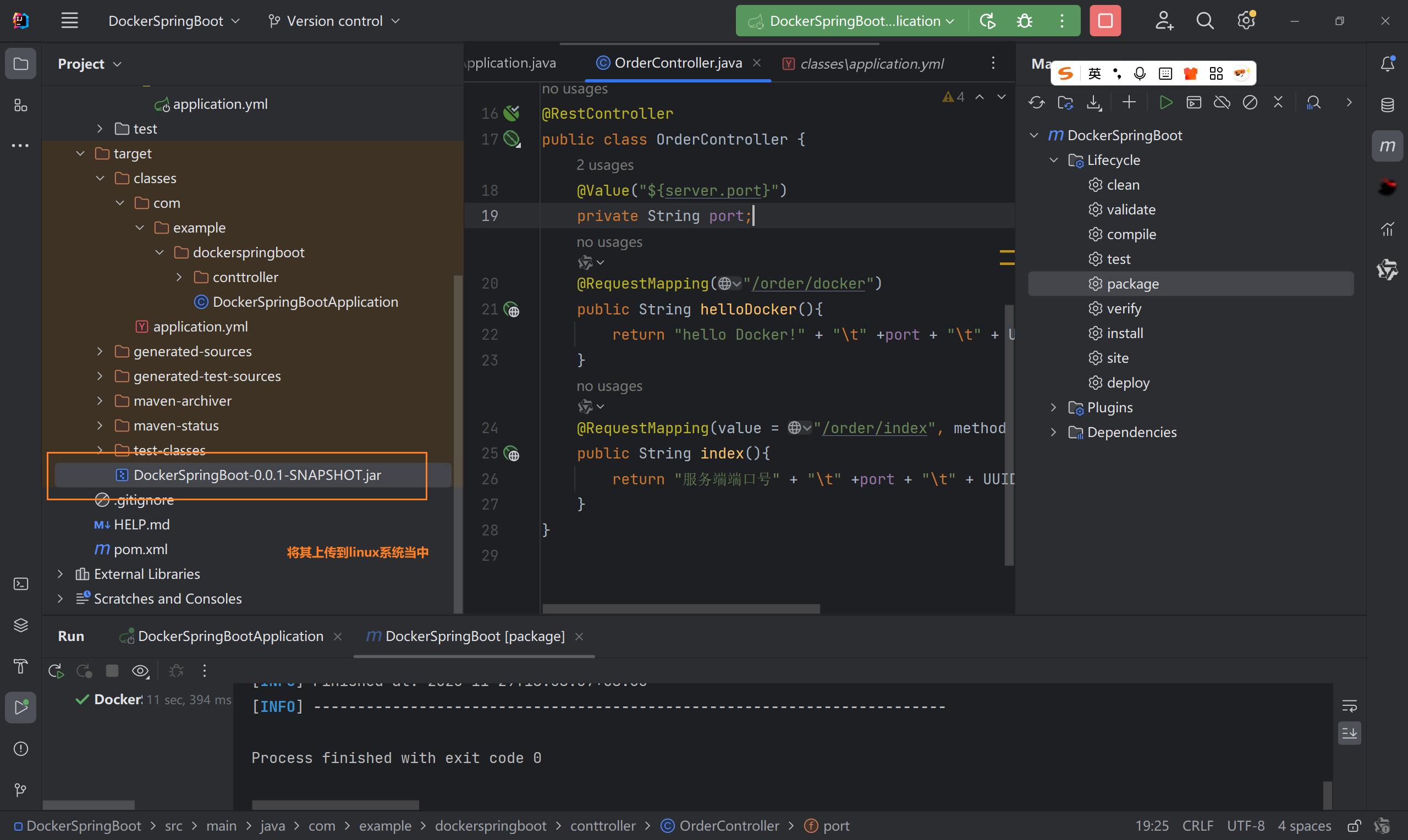 1.2、通过maven将项目打成jar包