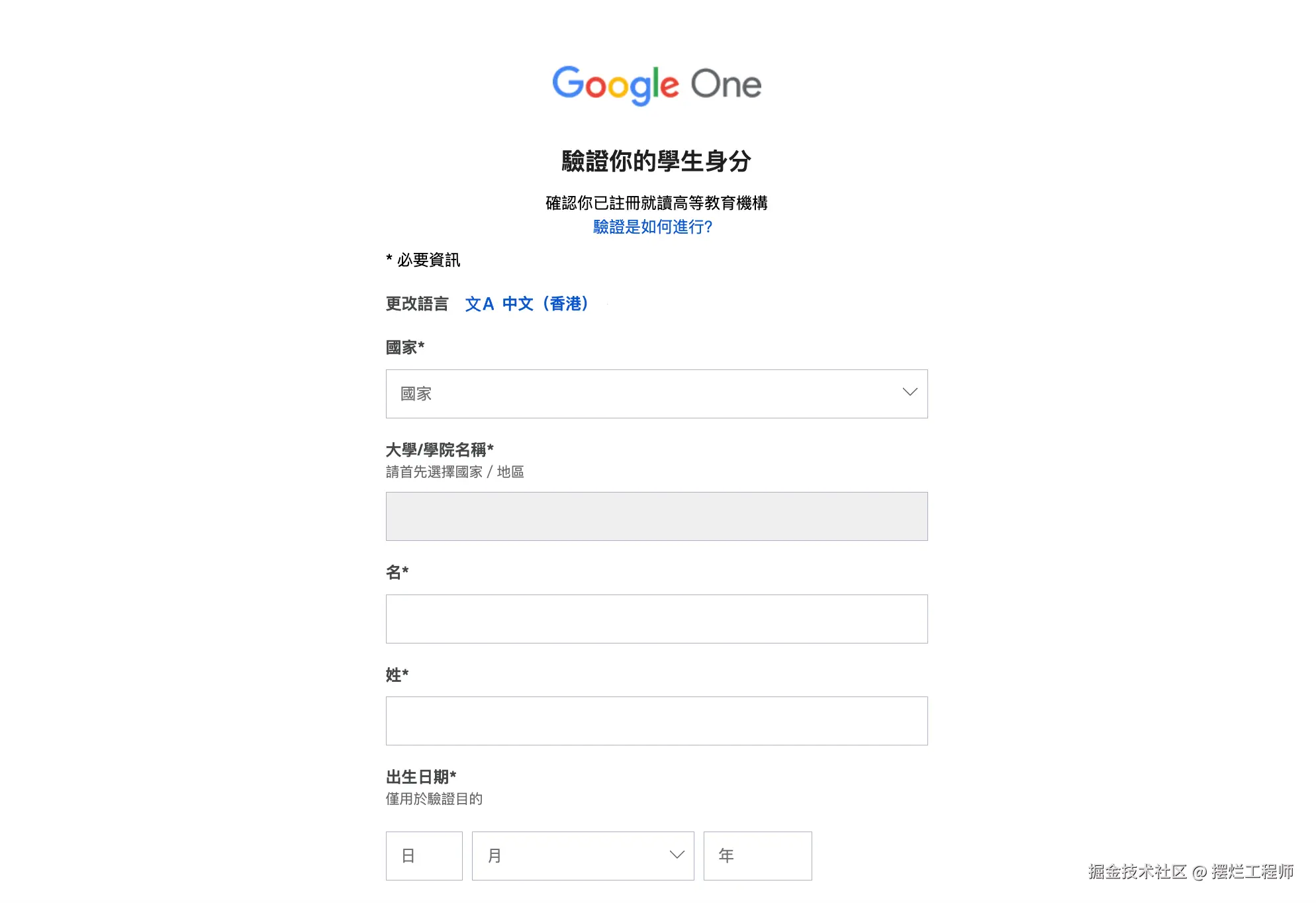 点击 verify eligibility 或者 验证资格 之后就可以获取到一条 Sheerid 链接,它会自动打开一个新页面,也就是表格页面。