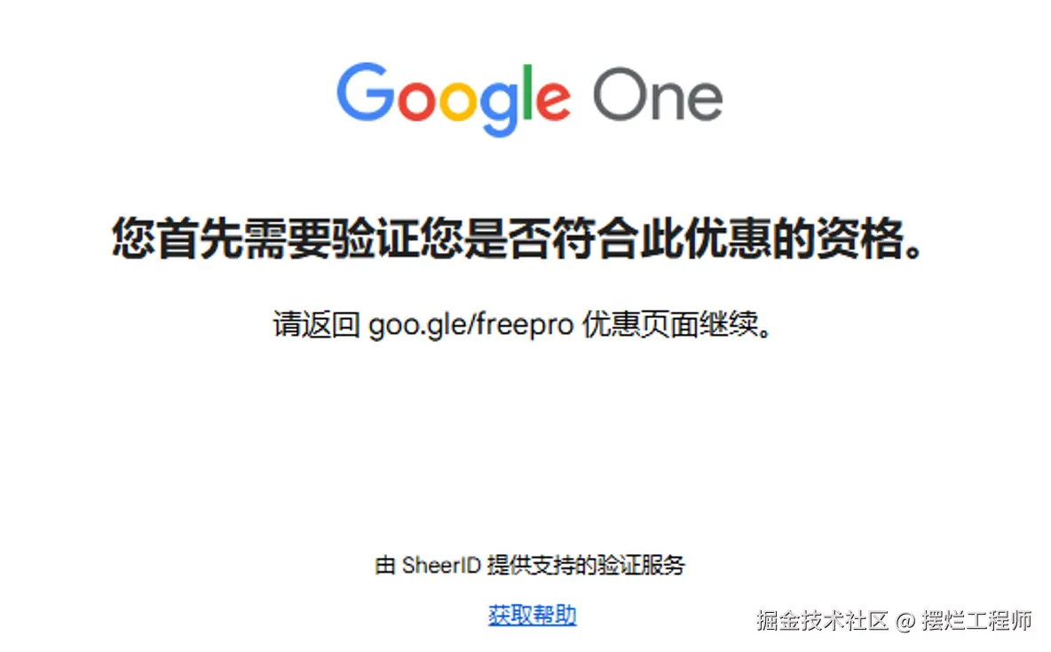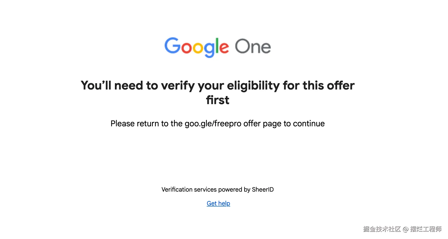 还有一种情况,循环获取最新的Sheerid链接时,你出现了这个页面,并且你打开了 goo.gle/freepro 之后,点击获取优惠又掉到这个页面。
