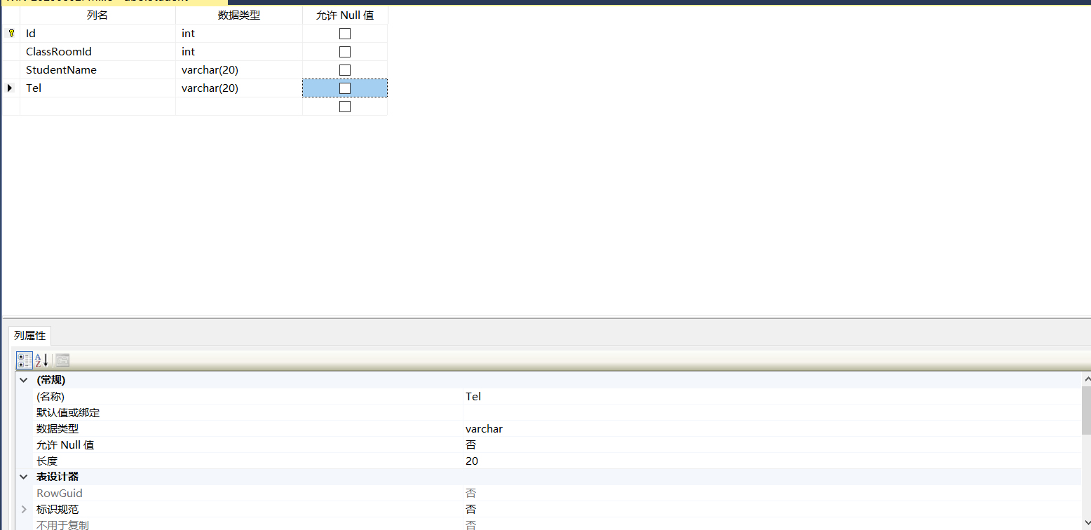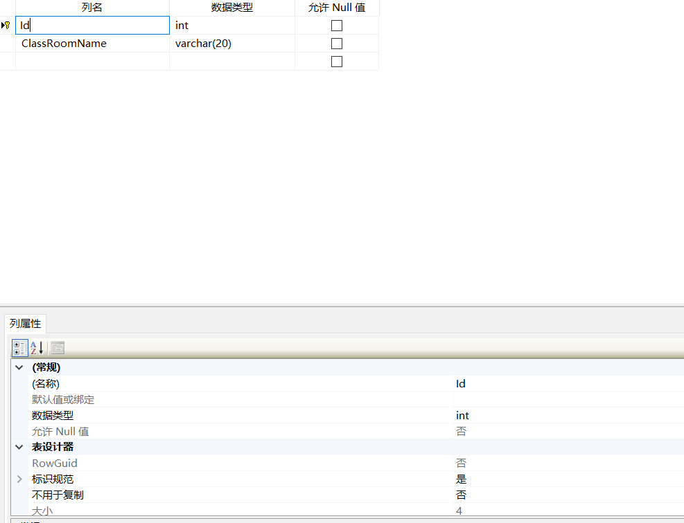 首先,在sql server 2019上新建一个数据库,此处取名为EFCoreDemo,在数据库中添加两张简单的表,ClassRoom和Student,ClassRoom为主表,Student为子表,ClassRoom与Student是一对多的关系(级联更新,级联删除),表字段如截图1和2。并向两表中任意填写一些数据。