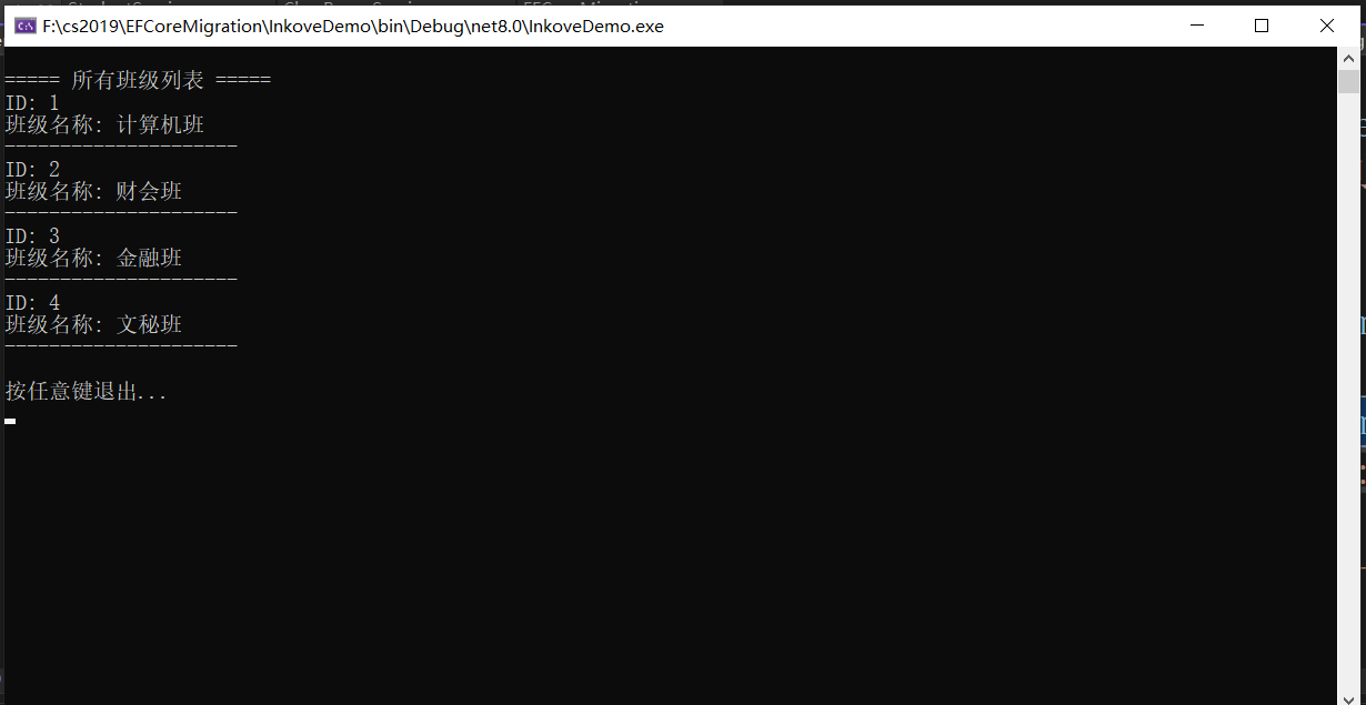 需要在依赖项引入自已刚建的类库EFCoreMigration,并将启动项目切换为InkoveDemo。运行后可看到如图3效果。