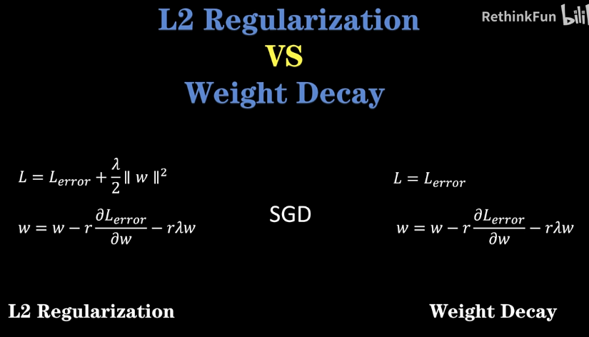 在SGD中,L2正则化和Weight decay的效果是完全一样的