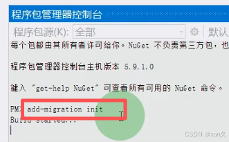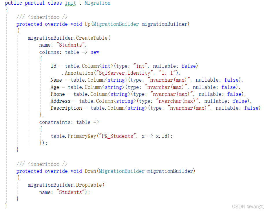 Add-Migration + 迁移名称 ---作用:启动迁移并生成迁移的代码