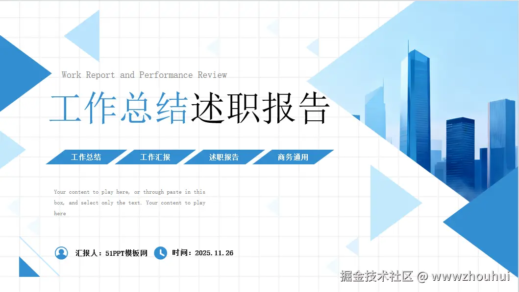 - 🔄 可复用性强:一次制作,终身使用,所有同类型PPT都能快速生成