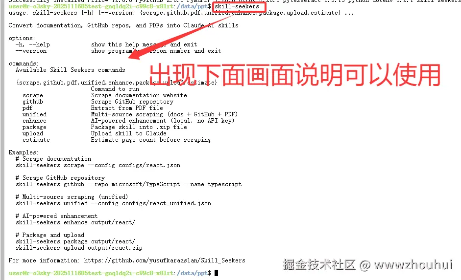 接下来我们需要安装 Skill_Seekers 工具。这是一个强大的Skills生成框架,可以帮助我们将PPT生成能力封装成可复用的Claude Skills。