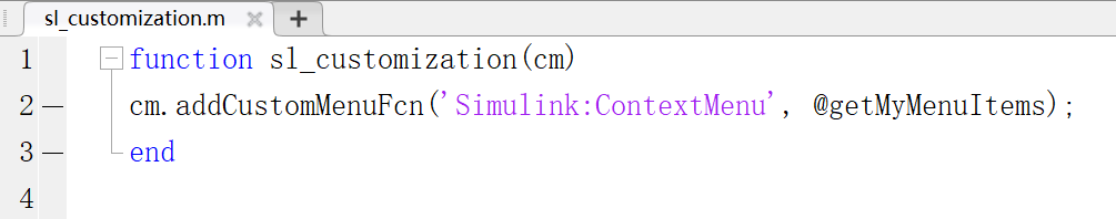 这一步中要新建一个名为sl_customization.m的空白文件,在文件中写入如下函数。