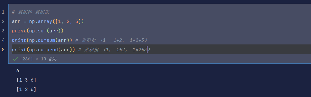 计算累积和(np.cumsum([])) 累积积(np.cumprod([]))