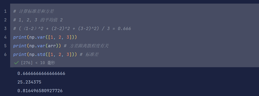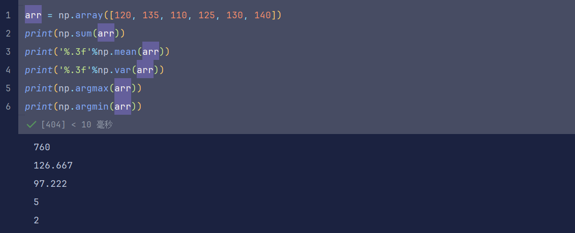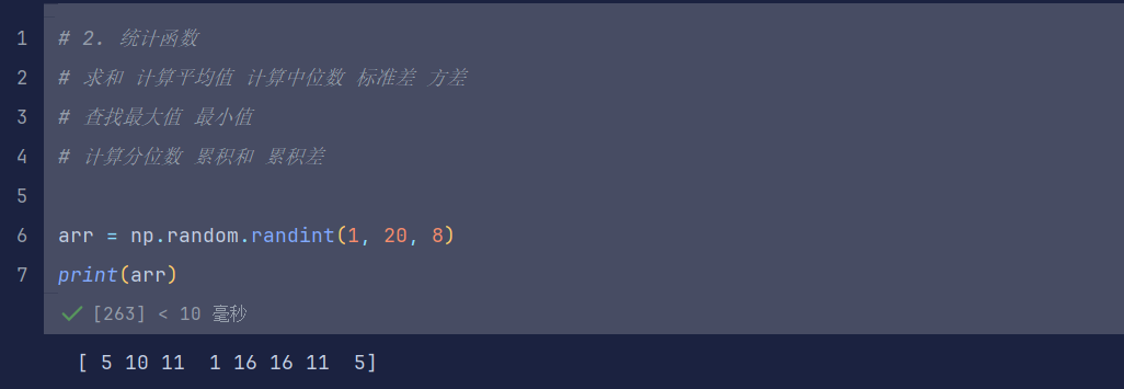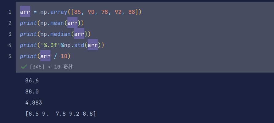 | 统计 | np.sum(x)、np.mean(x)、np.median(x)、np.std(x)、np.var(x)、np.min(x)、np.max(x)、np.percentile(x, q) |
