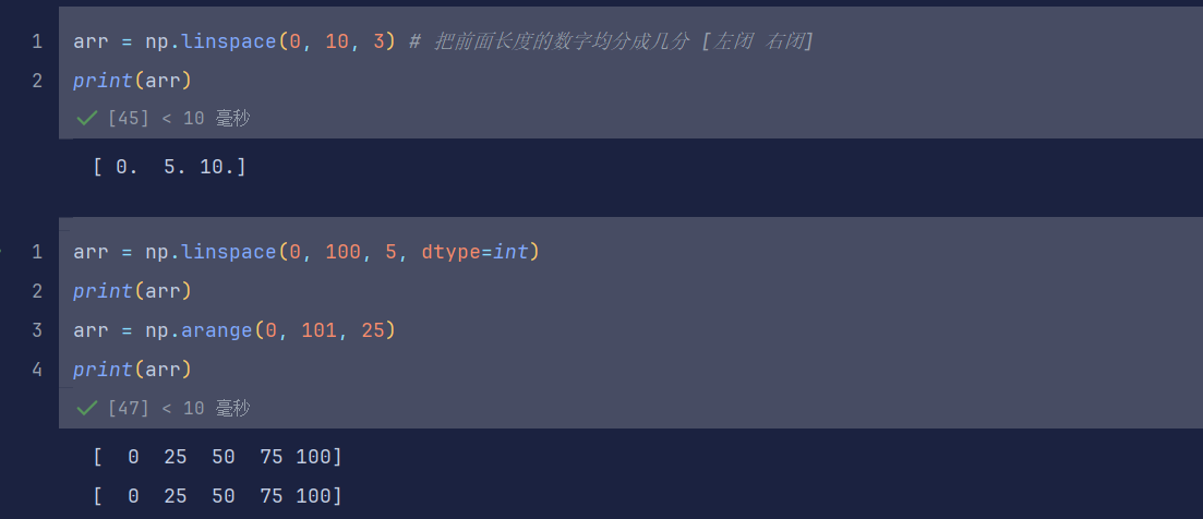 [np.linspace(start, end, temp) # 把前面数字均匀分成temp 等份 其中start 跟 end是左闭 右闭](# 把前面数字均匀分成temp 等份 其中start 跟 end是左闭 右闭)
