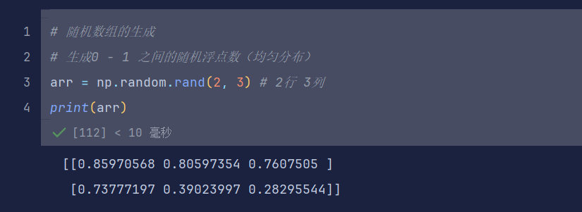- 随机数组生成:造一堆随机数,比如模拟实验数据、给 AI 模型初始化参数时用。