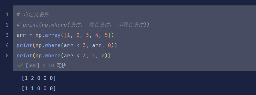 自定义条件(np.where(条件, 符合条件, 不符合条件))