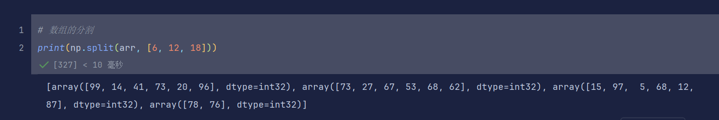 数组的分割 np.split(arr, [6, 12, 18]) 在[6, 12, 18] 里面进行下刀