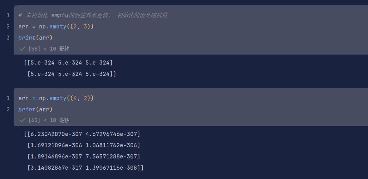 np.empty() 进行快速构建, 但是数组内容都是随机值