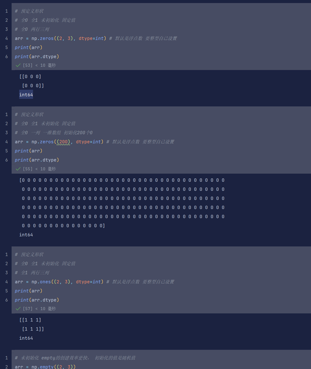 - 预定义形状填充:快速弄个固定大小的数组(比如全填 0 占位置,或全填 1 当初始值)。