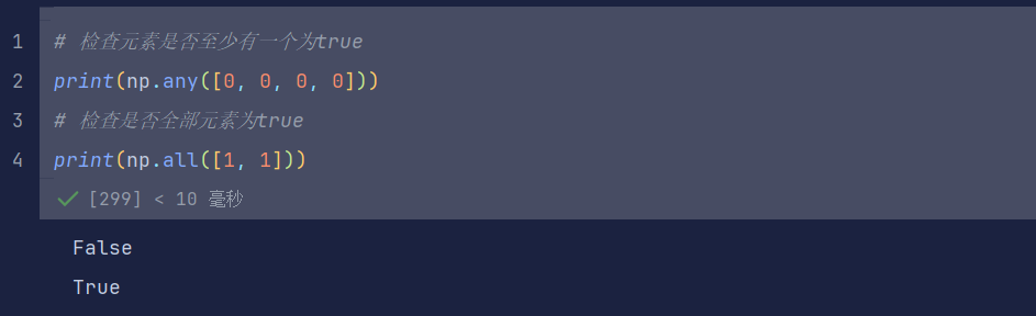 [检查元素是否至少有一个为true (np.any([]))检查是否全部元素为true (np.all([]))](#检查元素是否至少有一个为true (np.any([]))检查是否全部元素为true (np.all([])))