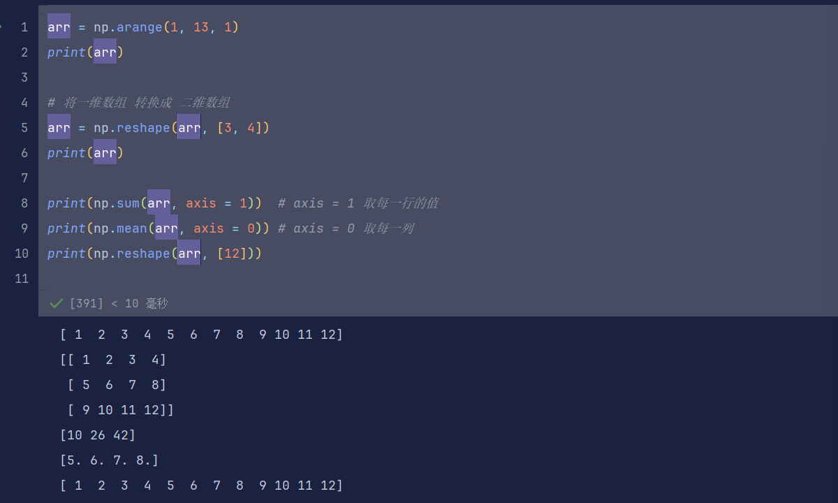 - 创建一个 1 到 12 的一维数组,并转换为(3,4)的二维数组。