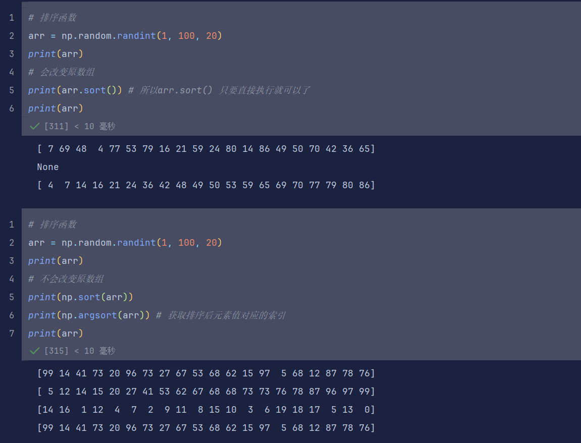 [排序函数 arr.sort() 或者 np.sort(arr)](#排序函数 arr.sort() 或者 np.sort(arr))