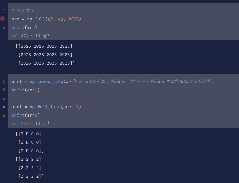 [np.full 指定进行填充满;](#np.full 指定进行填充满;)