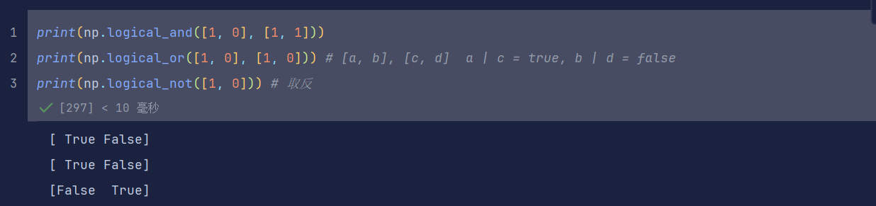 逻辑与或非(np.logical_and([], []); np.logical_or([], []); np.logical_not([[]))