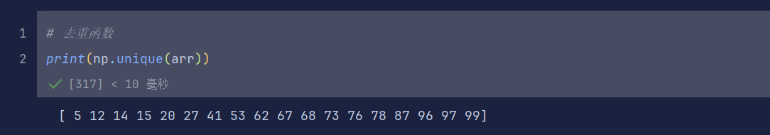 [去重函数 可以用作找唯一值 np.unique(arr)](#去重函数 可以用作找唯一值 np.unique(arr))