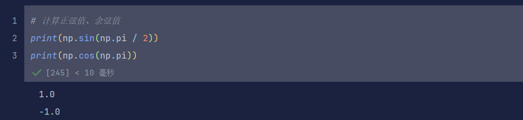 [计算正弦值 和 余弦值 np.sin() 和 np.cos()](#计算正弦值 和 余弦值 np.sin() 和 np.cos())