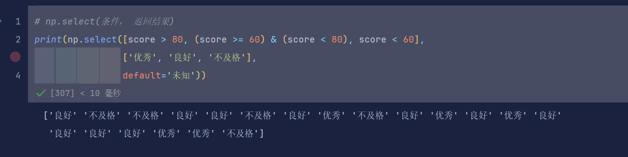 [np.select() 可以达到跟np.where()嵌套之后相同的效果](#np.select() 可以达到跟np.where()嵌套之后相同的效果)