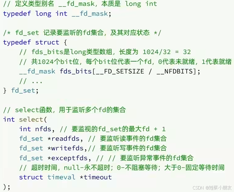 - 在用户态需要遍历原fd_set和修改后的fd_set才能知道那些数据就绪