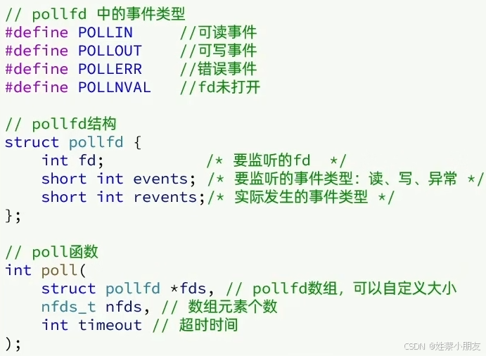 - Poll():监听fd就绪,例如epoll_wait()、select()、poll()