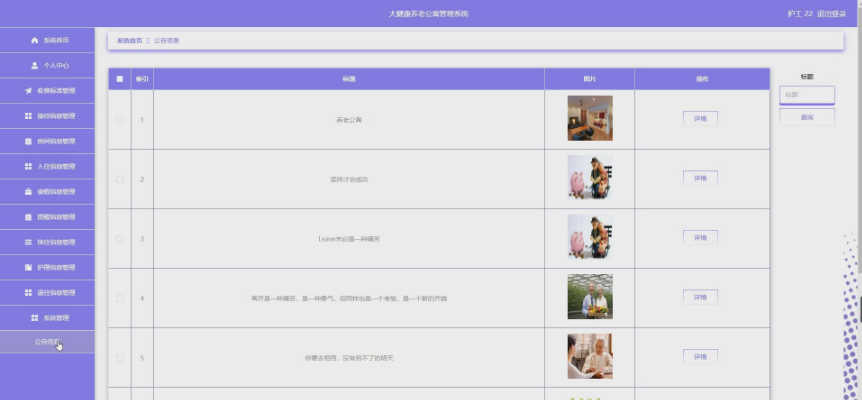 随着我国人口老龄化程度持续加深,失能、半失能老人数量逐年增长,兼具居住、护理、健康管理功能的养老公寓成为主流养老模式之一。但传统养老公寓多依赖人工记录、纸质化管理,在服务精准度、运营效率、风险管控等方面存在明显短板,大健康养老公寓管理系统的开发,成为推动养老服务从 "粗放式" 向 "精细化" 转型的关键举措。