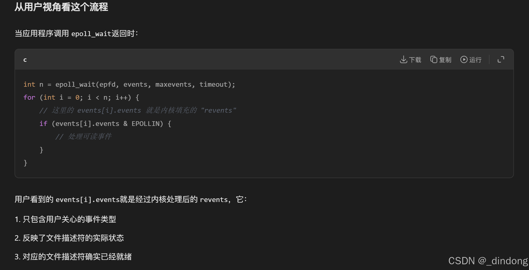 revents是 I/O 多路复用编程中一个非常关键的概念,尤其在 poll和 epoll的上下文中。它代表 "返回的事件"。