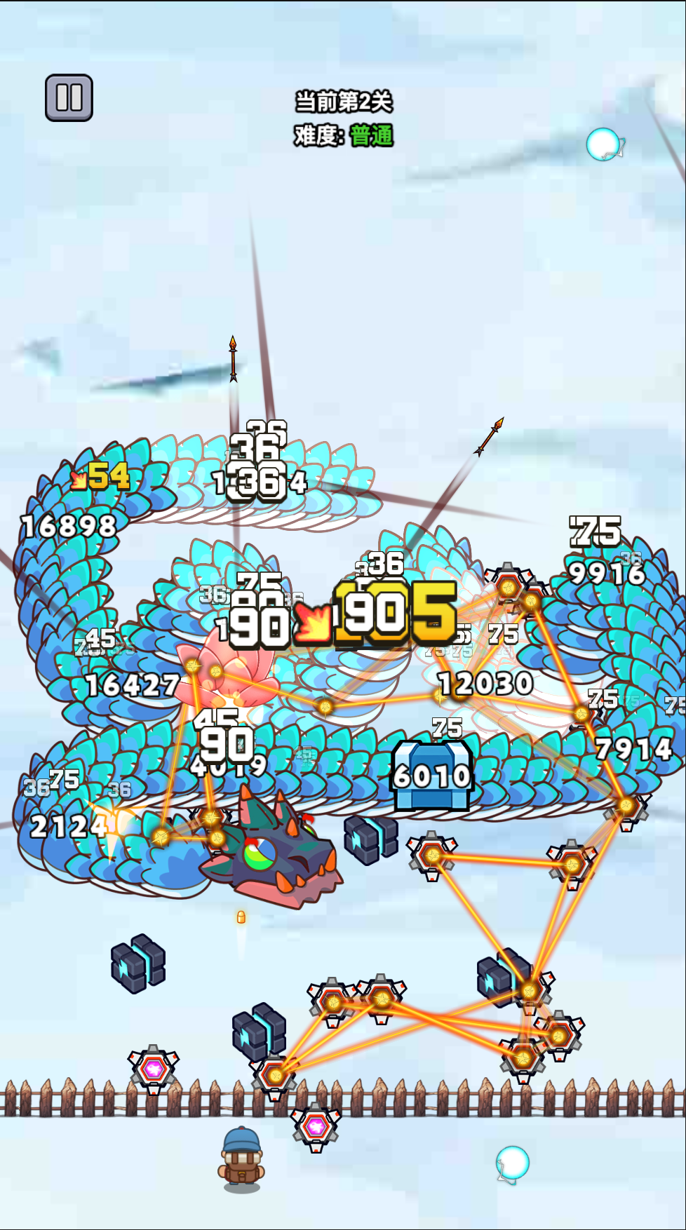 巨龙本体有总生命值,宝箱击毁影响本体血量,本体血量归零时游戏胜利