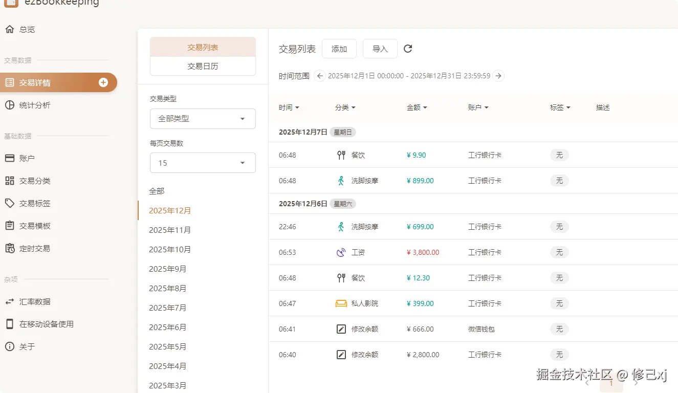 于是我不禁思考:既然我们享受着快捷支付的便利,是否也能找到一种方式,让消费重新变得可感知?我曾尝试手动记账,但不仅难以统计,账本也容易丢失;又试过一些记账软件,可它们往往太过"便捷",依然无法帮我找回那份对消费的真实感知。直到最近在 GitHub 上发现了一个开源项目------它恰好满足了我所有这些期待。今天,就想把它介绍给大家。