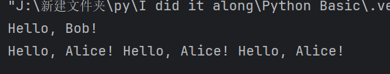 print(say_hello("Alice", 3)) # 输出:Hello, Alice! Hello, Alice! Hello, Alice!