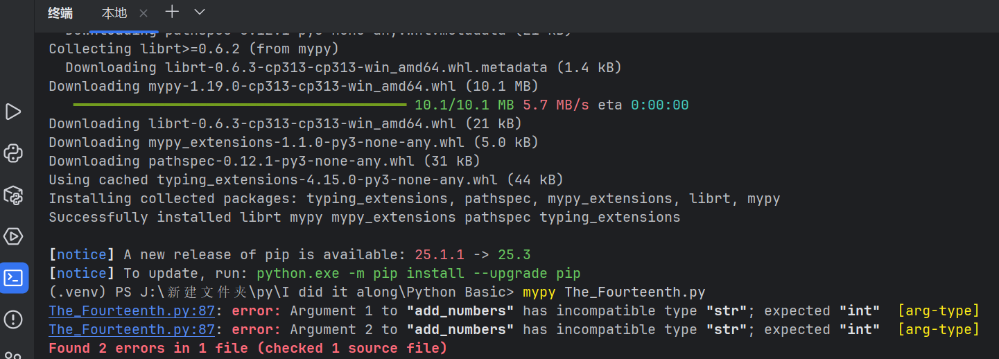 Mypy 是最流行的 Python 类型检查器。首先安装它